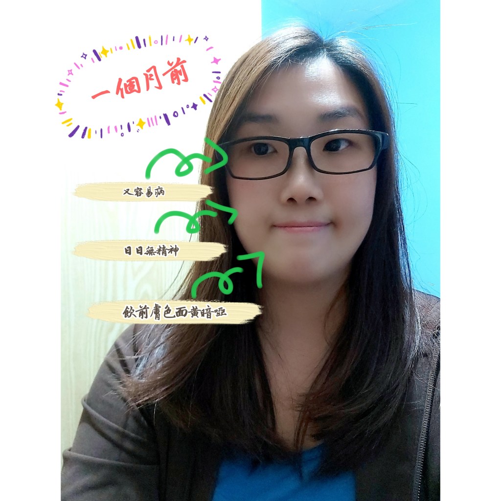 3️⃣以前面色好差,個樣仲勁殘🤢(成日嚇親人);依家成個人唔同哂,每日都精神飽滿🥰,面色紅潤,對身體健康好咗好多,最開心係皮膚白咗,靚咗🤭