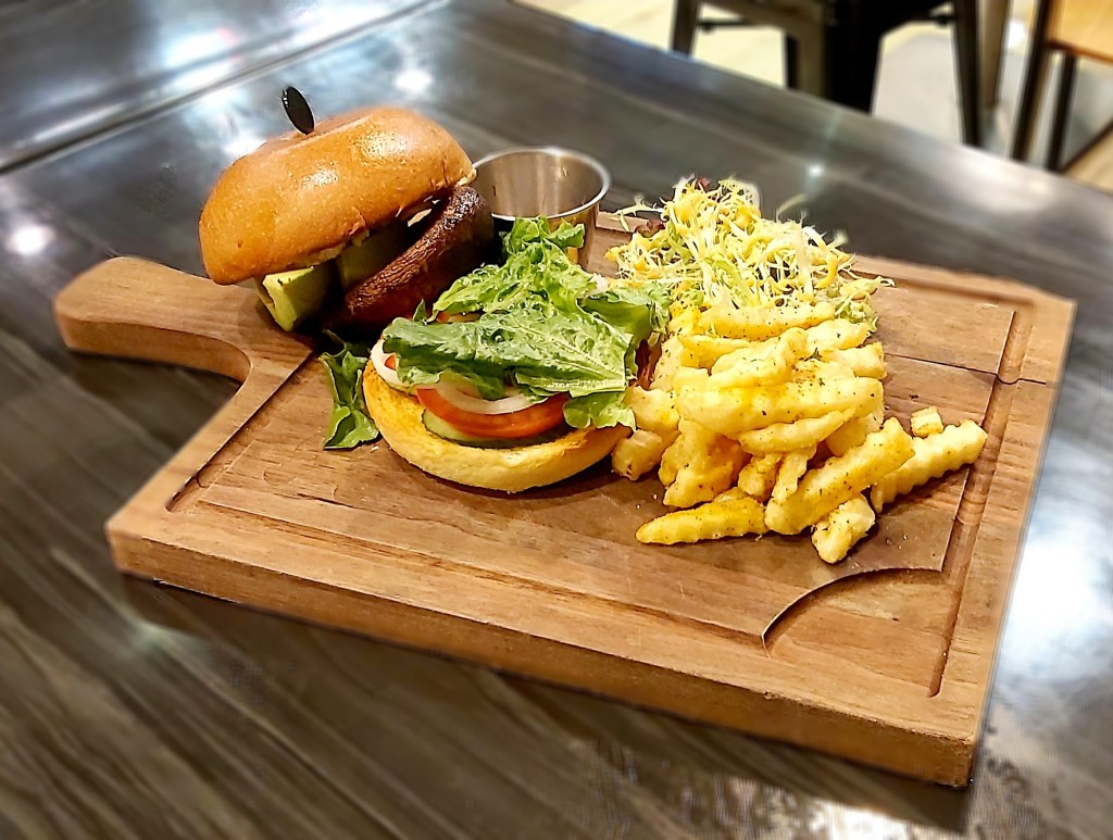 牛油果、大啡菇、芝士漢堡(素)